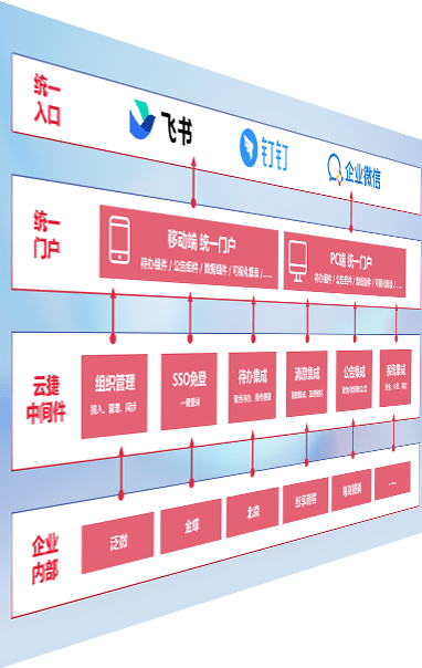 对协作平台提供支持服务,,支持企业应用与协作平台对接,,,包含组织同步、、、、消息集成、、、、待办集成等。。。。支持目前主流的协作平台:钉钉、、、企微和飞书。。